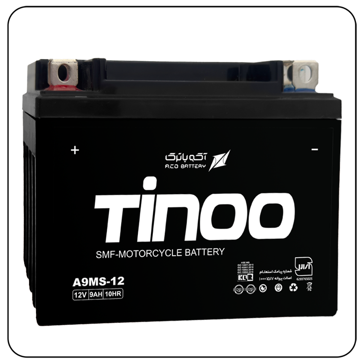 وقتی کیفیت و اطمینان در اولویت است، انتخاب باتری ۹ آمپر کوتاه تینو (Tinoo) از گروه صنعتی آکوباتری (Aco Battery) یک تصمیم حرفهای برای موتورسواران دقیقپسند است.